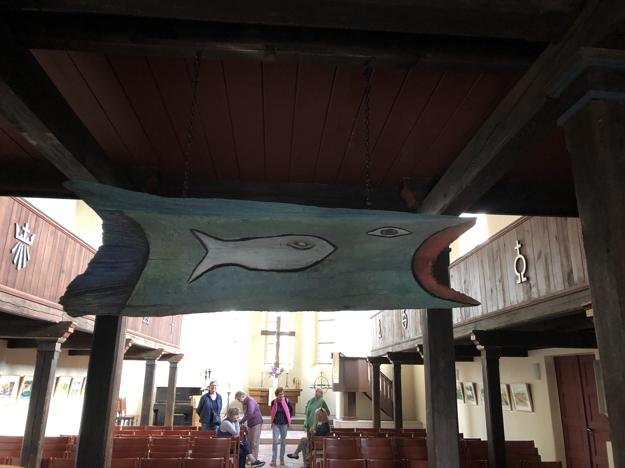 Einen schönen Abschluss bildete der Besuch der St. Michaels-Kirche. Pfr. i.R. Matthias Trodler begrüßte uns mit einem Orgelstück, zeigte uns gehäkelte Bäume vor der Kirche und erläuterte in launigen Worten „seine“ Kirche und die Besonderheiten wie ein „abnehmbares“ Taufbecken, Kunstintallationen und Gemälde. Vielen Dank nochmals dafür. Anbei einige Impressionen.