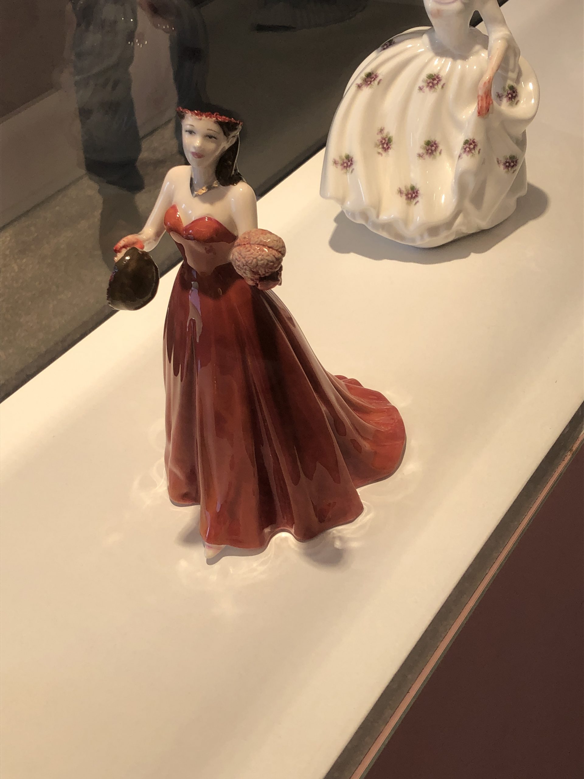 Die schottische Künstlerin Jessica Harrison hinterfragt in ihrer Serie von Keramiken ein makelloses Frauenbild, indem sie ihre Figuren deren innere Organe – hier das Gehirn – souverän und zugleich subversiv nach außen präsentieren lässt.
