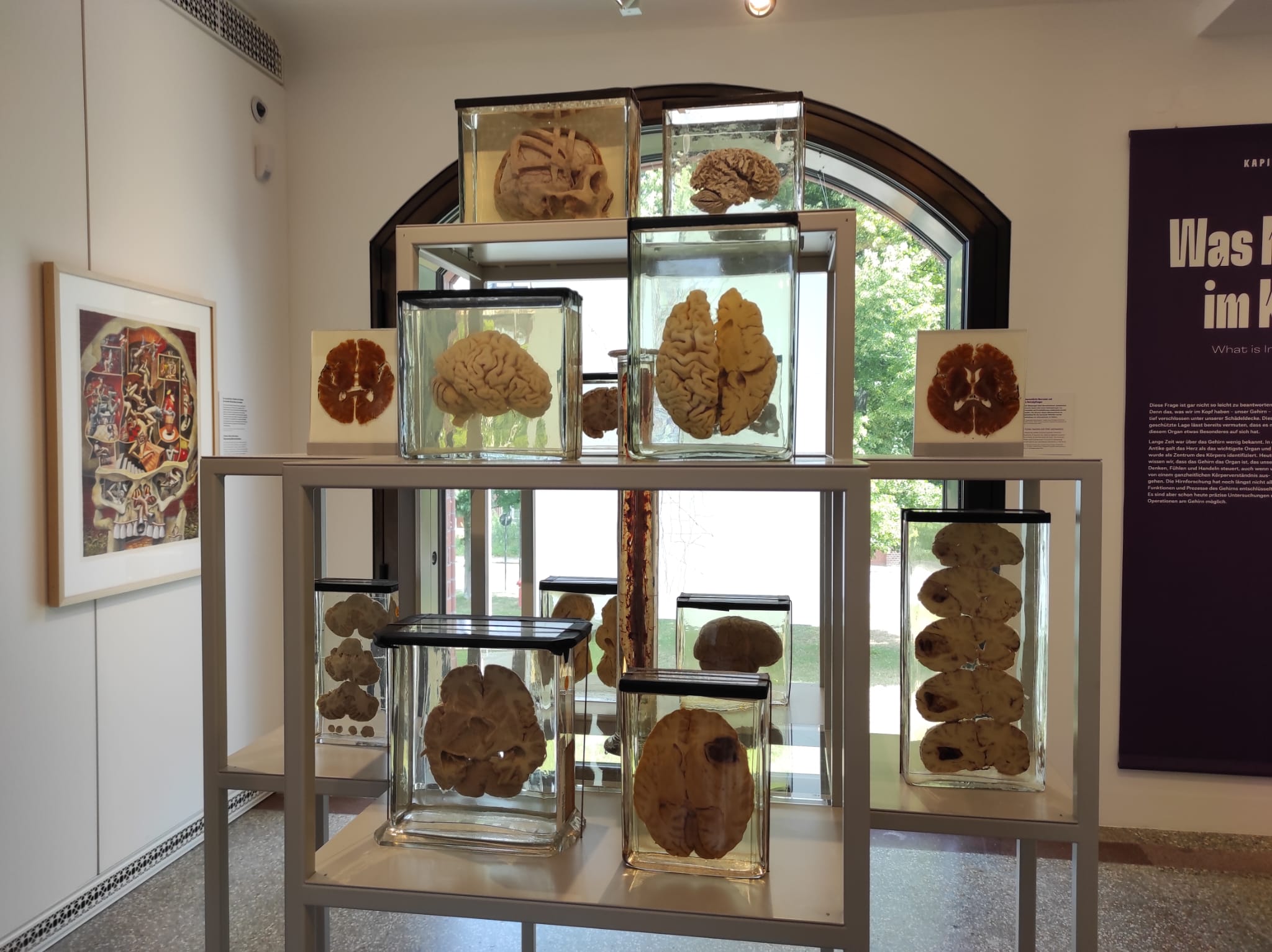 Das Wetter an unserem Ausflugstag hatte uns erst von außen gesäubert, damit wir einen besseren Blick in unser Inneres bei der Führung haben durften. Unser Guide, Herr Dörner, führte uns in launigen Worten durch die doch recht gewöhnungsbedürftige Ausstellung zu dem Sonderthema „Gehirn“. Es war schon sehenswert was „man“ so in sich hat und was es für Leistungen vollbringt. Sollte mal etwas nicht richtig „ticken“ gibt es ja Methoden zu untersuchen woran es liegen könnte. Das sind schon sehr spezielle Untersuchungen.