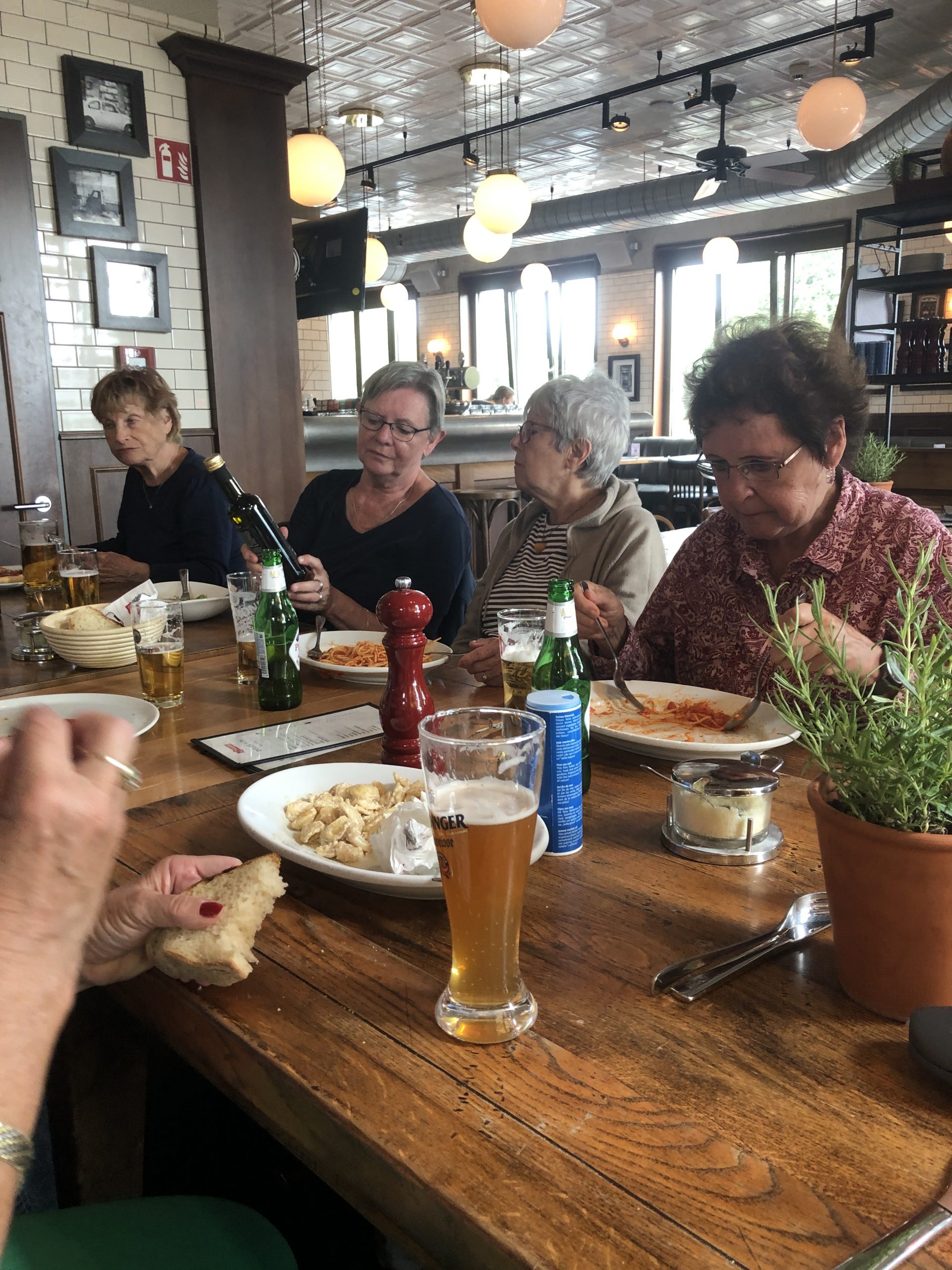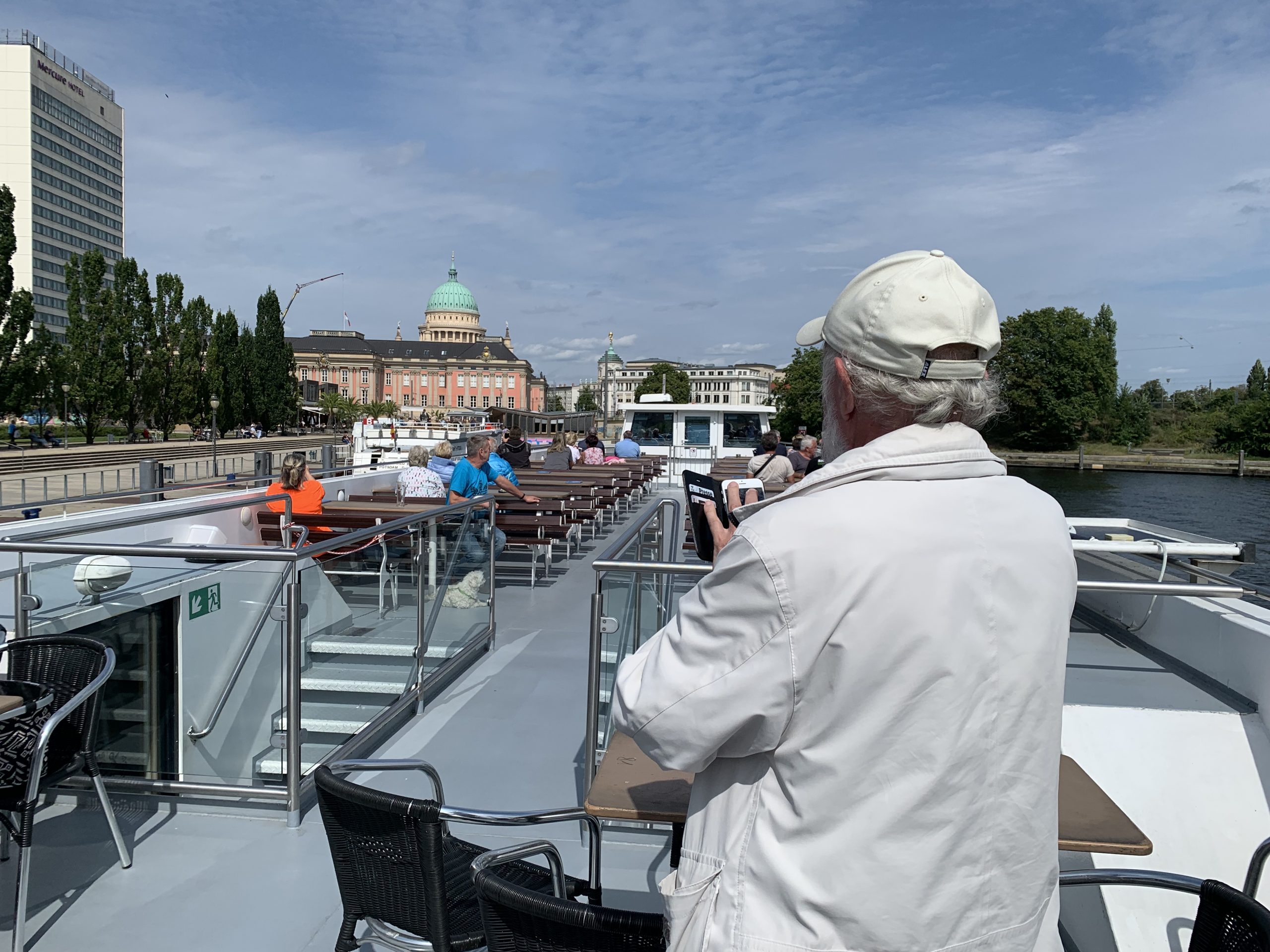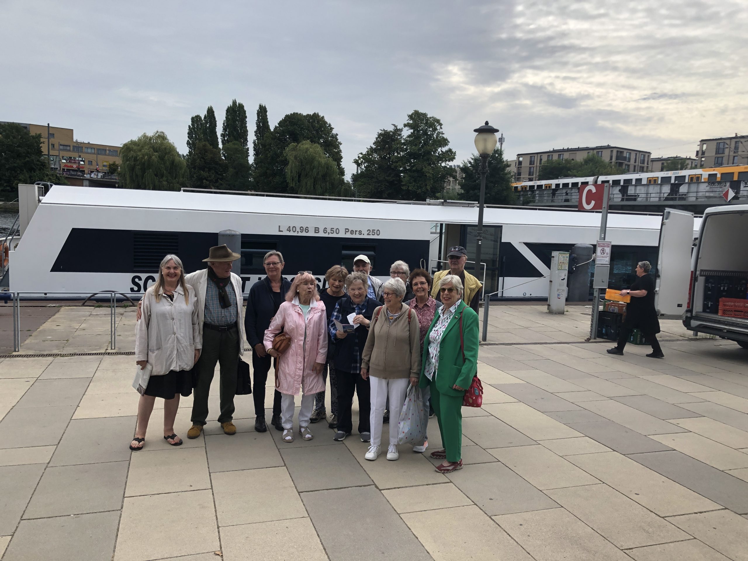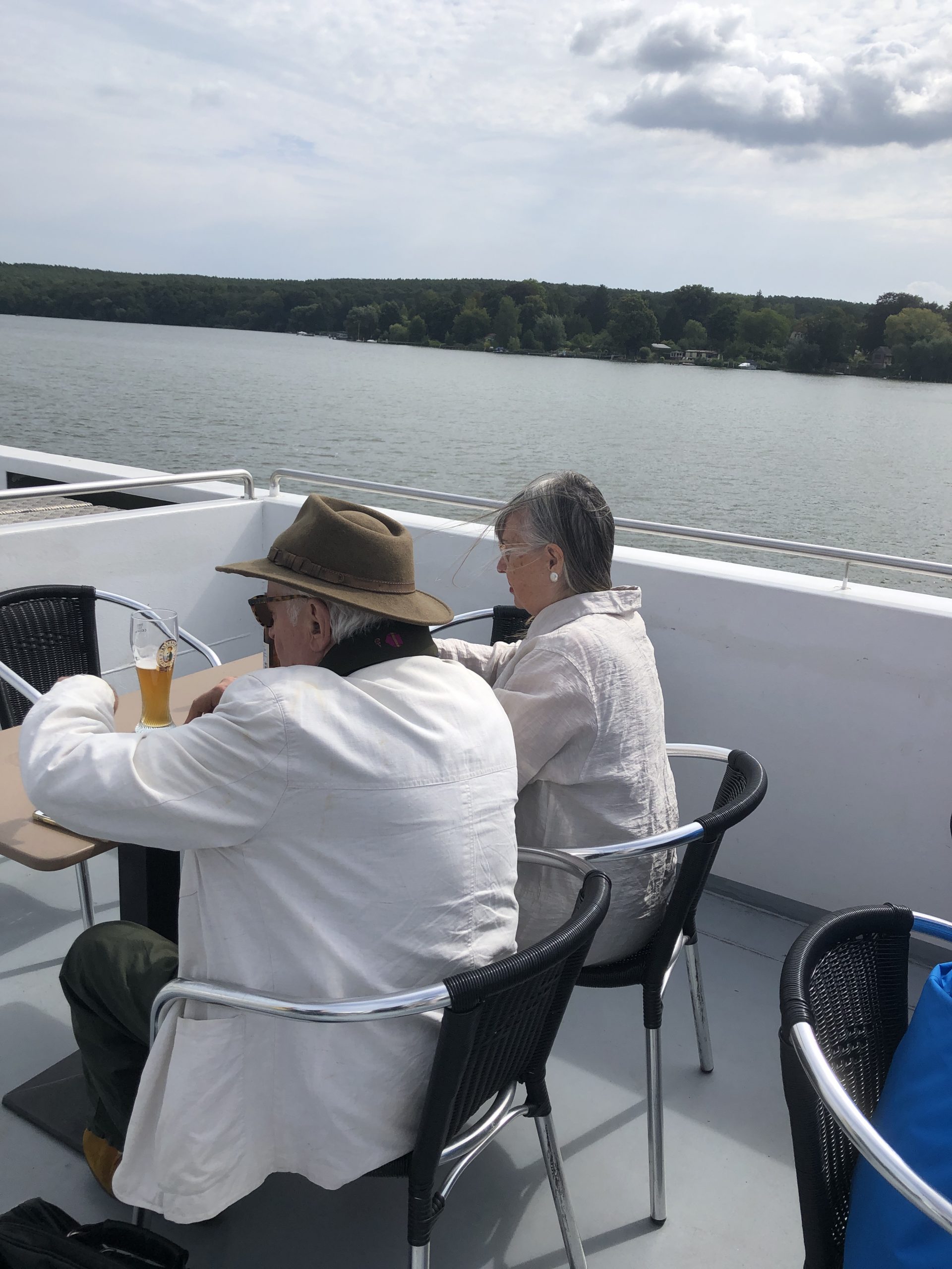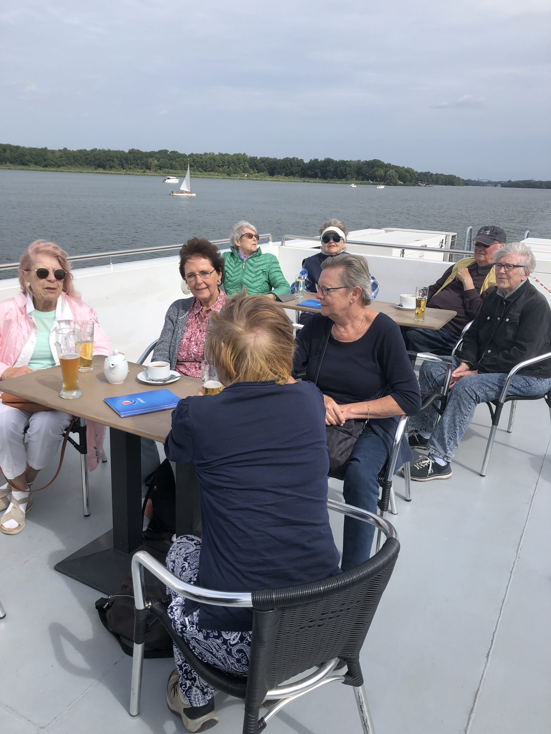 Mit Bus und Bahn ging es zur Anlegestelle Potsdam. Unsere Gruppe fand genügend Platz auf dem Oberdeck. Das Schiff MS Belvedere brachte uns über den Templiner See bis nach Werder und fuhr dann zurück. Bei Bier und kalten Getränken genossen wir die Fahrt an der schönen Gegend. Eine zünftige Stärkung bei XXL-Pizza, Spagetti und Salaten speisten wir. Eine schöne Fahrt mit viel Neuem wurde uns an diesem Tag beschert.