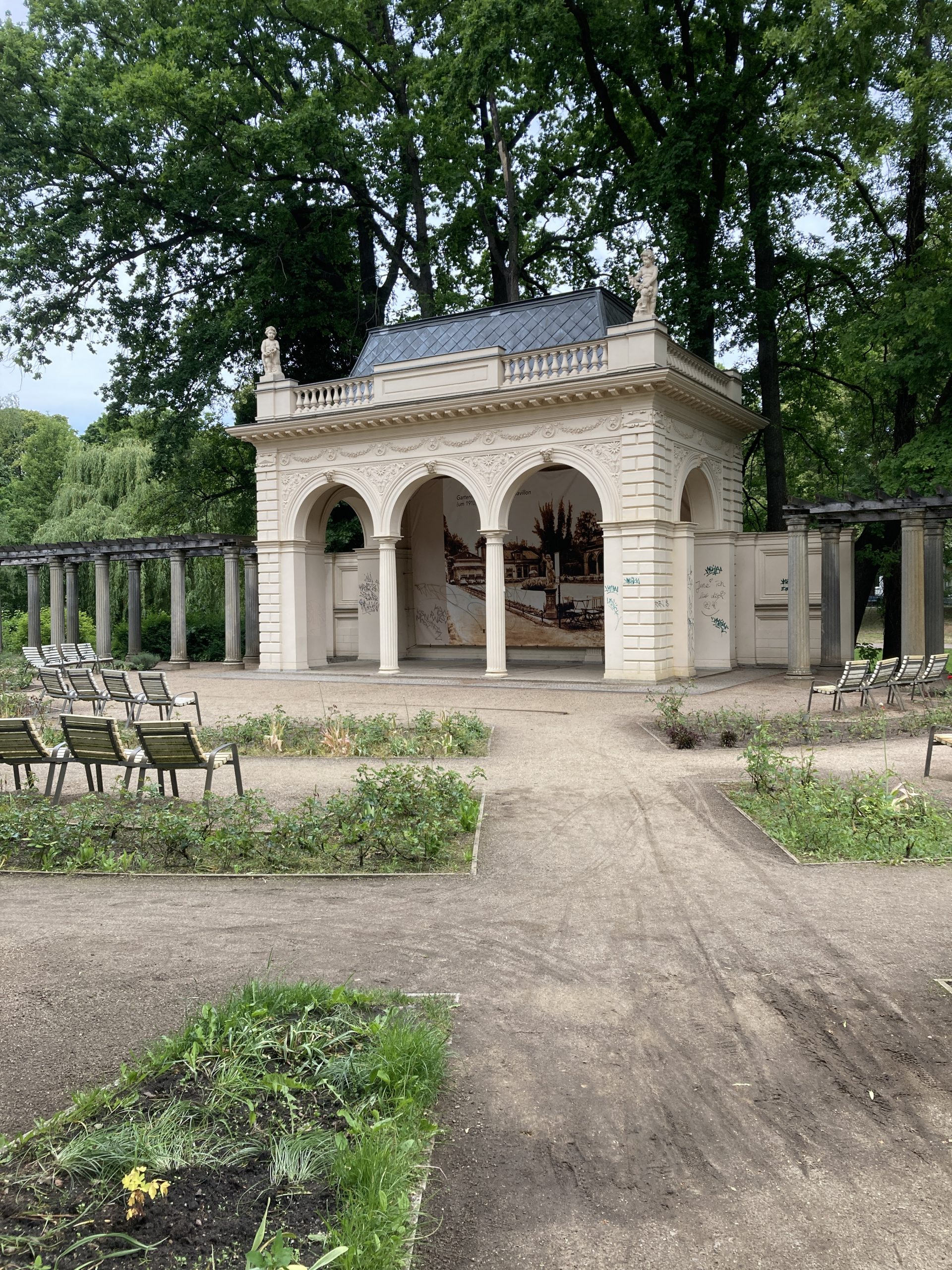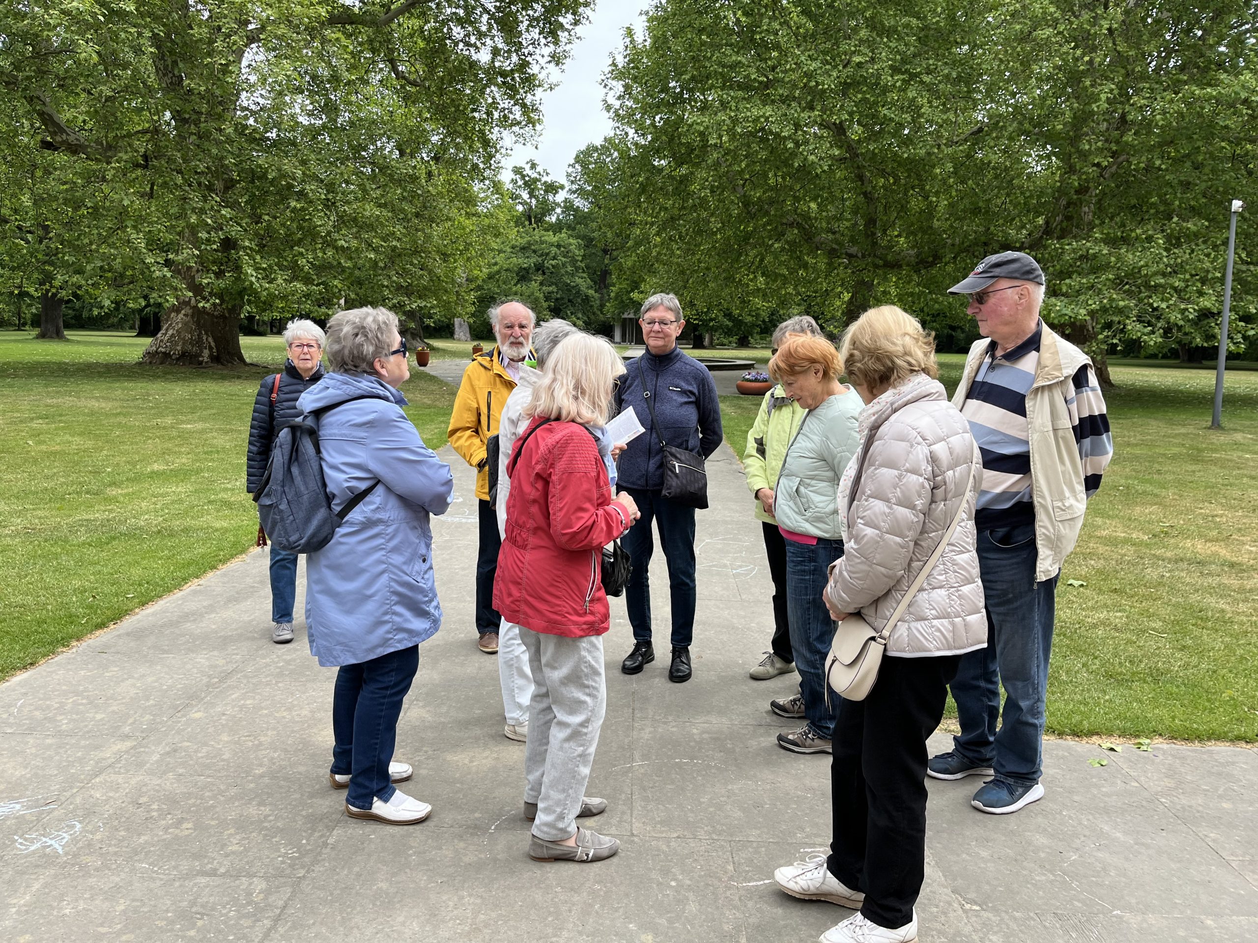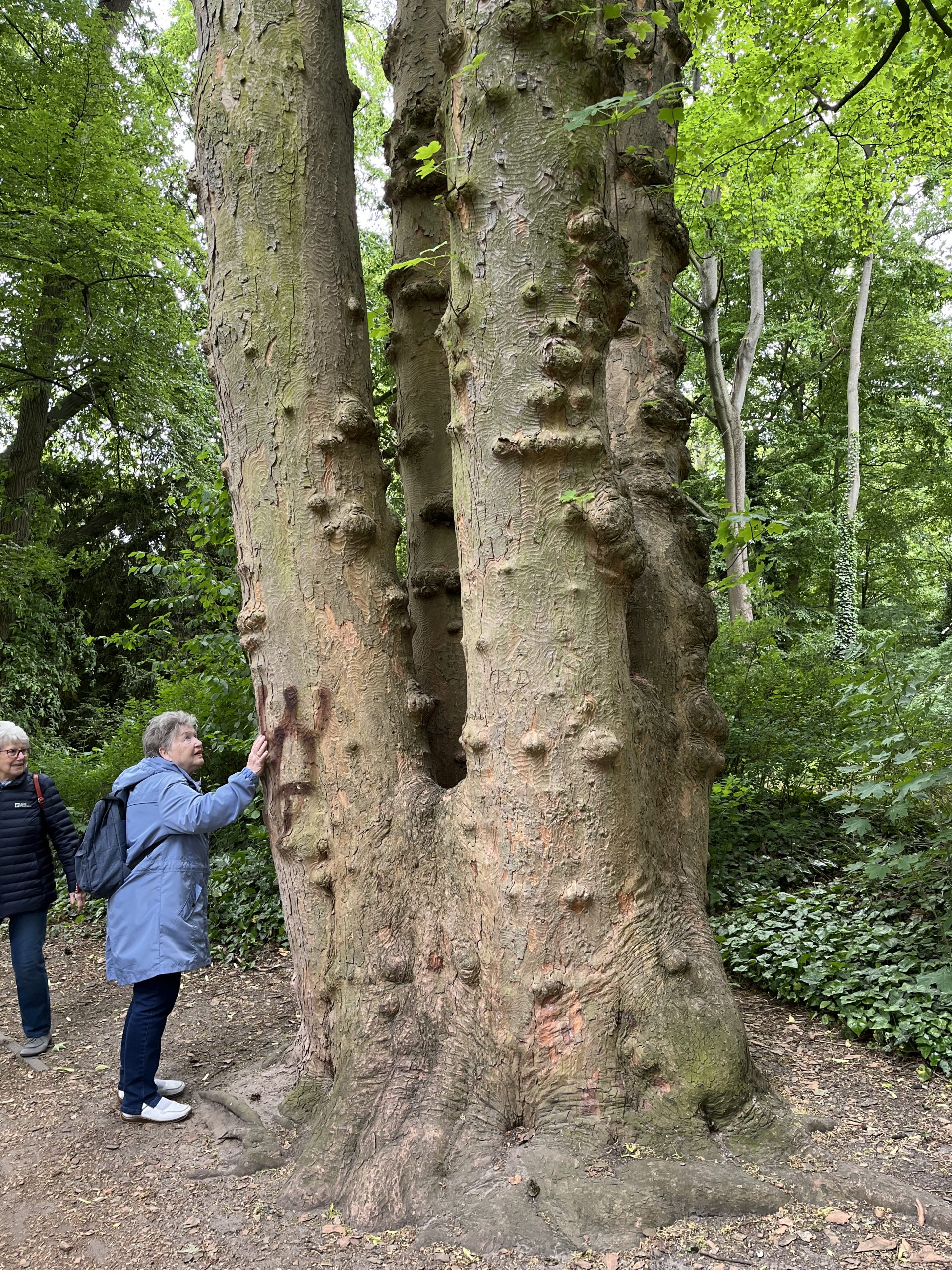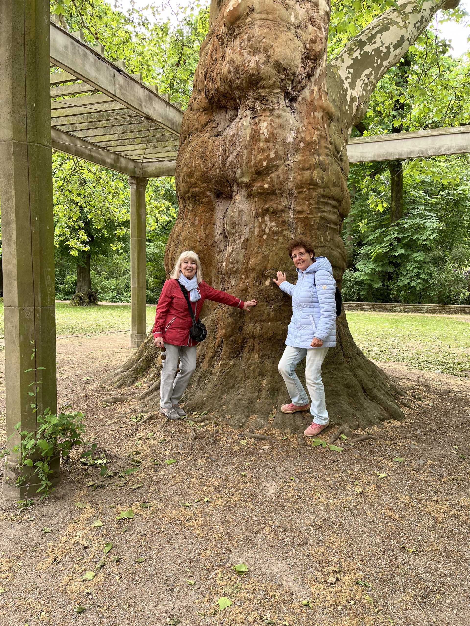 Nachdem wir unseren Besuch des Bürgerparks beim letzen Besuch in Pankow aus Zeit- und Hitzegründen verschoben hatten, haben wir unseren Ausflug am 22.Mai mit einem Besuch des Schlosses Schönhausen nachgeholt. Das „Schlösschen“ von Königin Elisabeth Christine bis zu ihrem Tode 1797 ihr Wohnsitz, wurde es von 1949 bis 1960 Dienstsitz des Präsidenten der ehem.  DDR. Der große Park mit seinem uralten Baumbestand ließ einige Besucherinnen ins Schwärmen kommen.