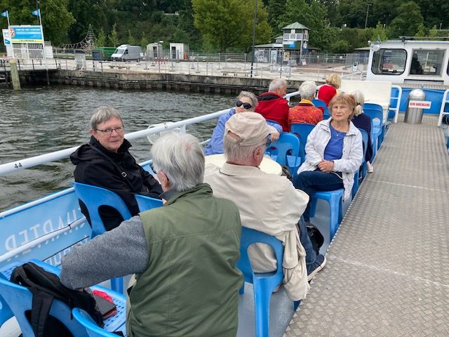 Für den Monat Juli hatten wir am 24.07.2025 eine Dampferfahrt auf dem Wannsee geplant. Da Petrus uns hold war, konnte es ab Anlegestelle Wannsee losgehen. und wir liessen uns über 7 Seen fahren. Kleiner Wannsee • Pohlesee • Stölpchensee • Griebnitzsee • Glienicker Lake • Jungfernsee • Großer Wannsee waren die Seen, die wir abgefahren haben. Viele schicke Villen und das Schloß Babelsberg, die Glienicker Brücke und die Pfaueninsel waren Hightlights. Im Lorretta am Wannsee konnten wir uns anschließend stärken. Ein schöner Sommertag!