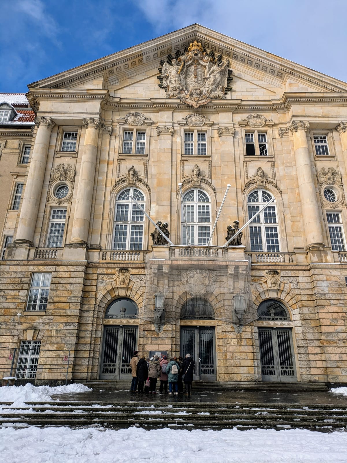 Im Februar hatten wir einen Besuch des Kammergerichts am Kleistpark geplant. Der heftige Schneefall am Vortag bremste uns ein wenig aus. So stapften wir auf schnee-bedeckten Straßen zum Gericht. Nach ausgiebiger Sicherheitsprüfung durften wir das Gebäude besuchen. Die beiden Führerinnen des Kammergerichtes erläuterten uns die jahrhundertelange Bedeutung des Gerichts für Deutschland. Interessant waren auch der Plenarsaal, der im 3. Reich durch den Volksgerichtshof eine unrühmliche Bedeutung bekommen hat. De Prozesse des Richters Freissler fanden dort statt.