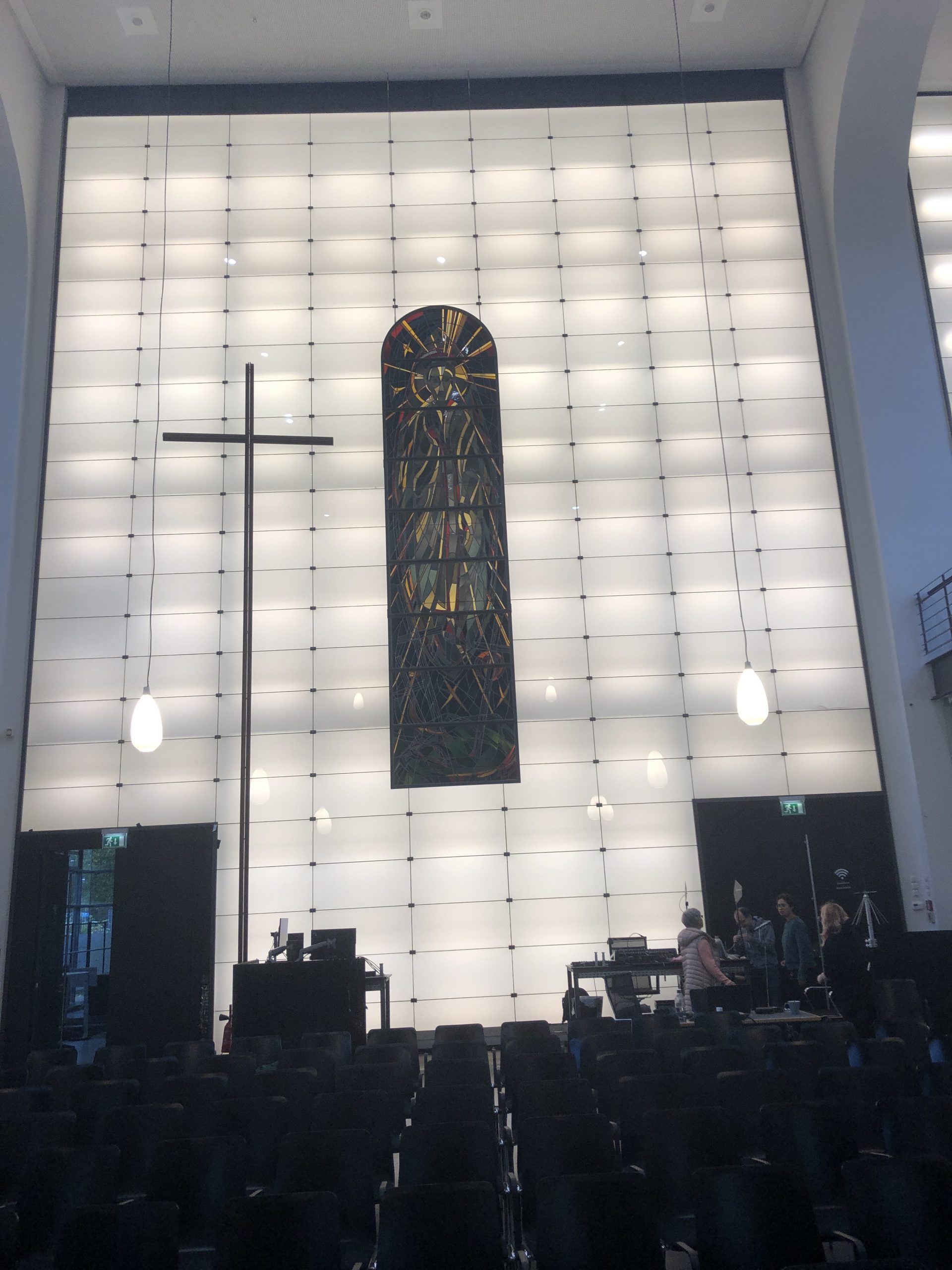 Der alte und der neue Teil fügt sich harmonisch in einander. Eine Photovoltaikanlage, ein Umweltzentrum und Bienen auf dem Dach machen die Kirche nachhaltig.