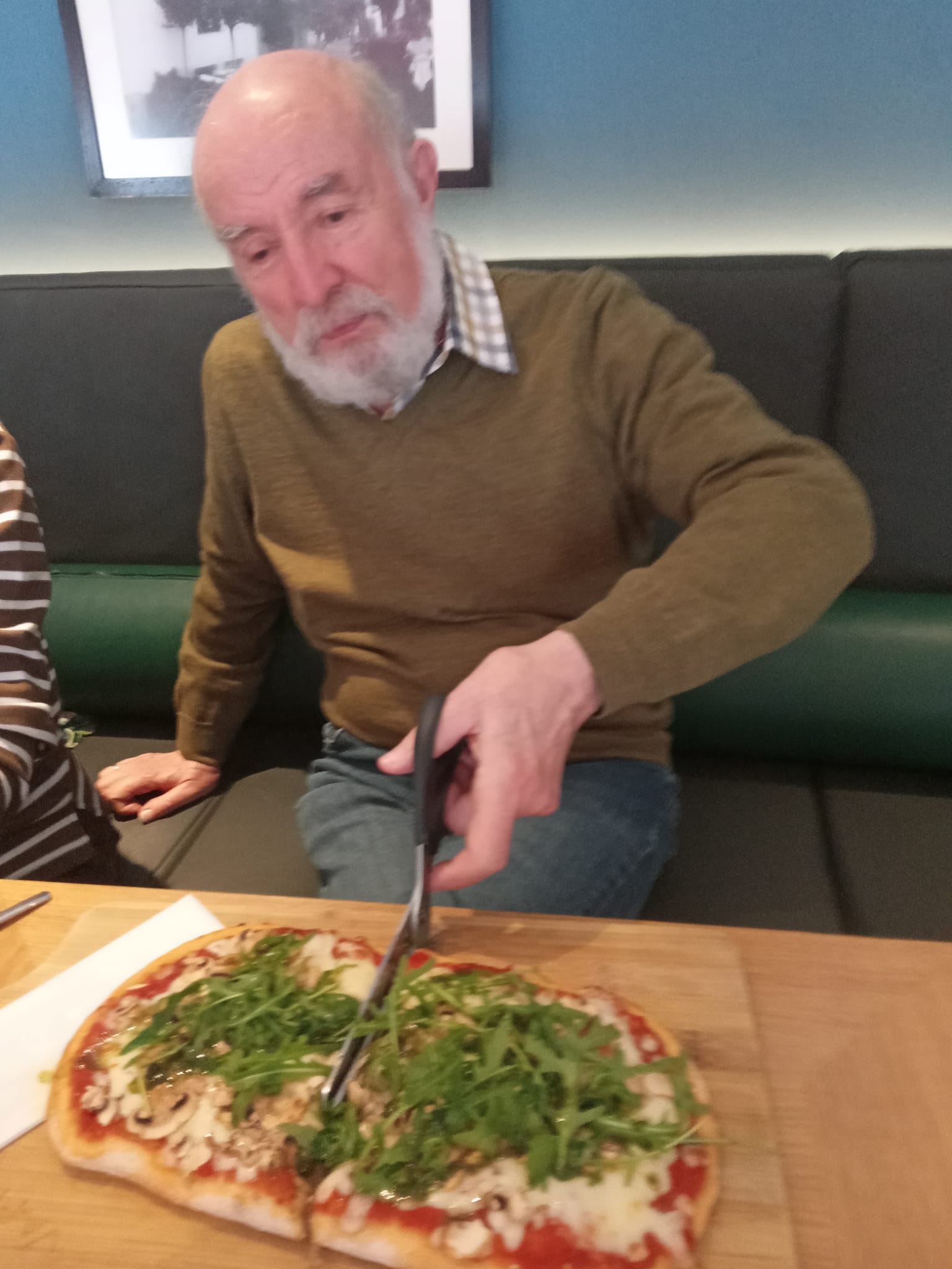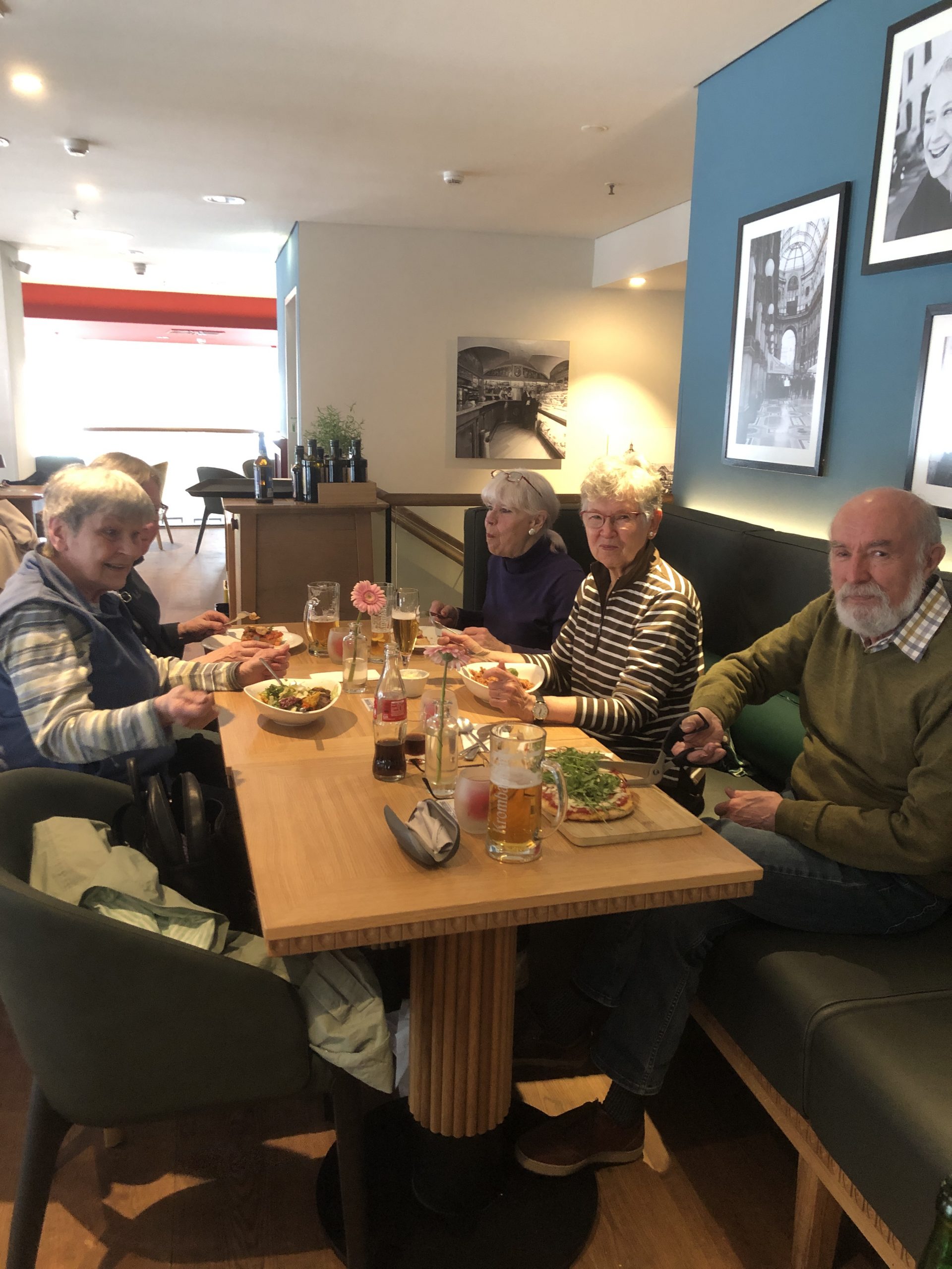 Der anschließende Schmaus beim „Italiener um die Ecke“ brachte neue Erkenntnisse über das jetzt übliche Bestellsystem. „Haben Sie schon mal eine Pizza mit einer Schere zerteilt?“ Auch das konnten wir hier lernen.