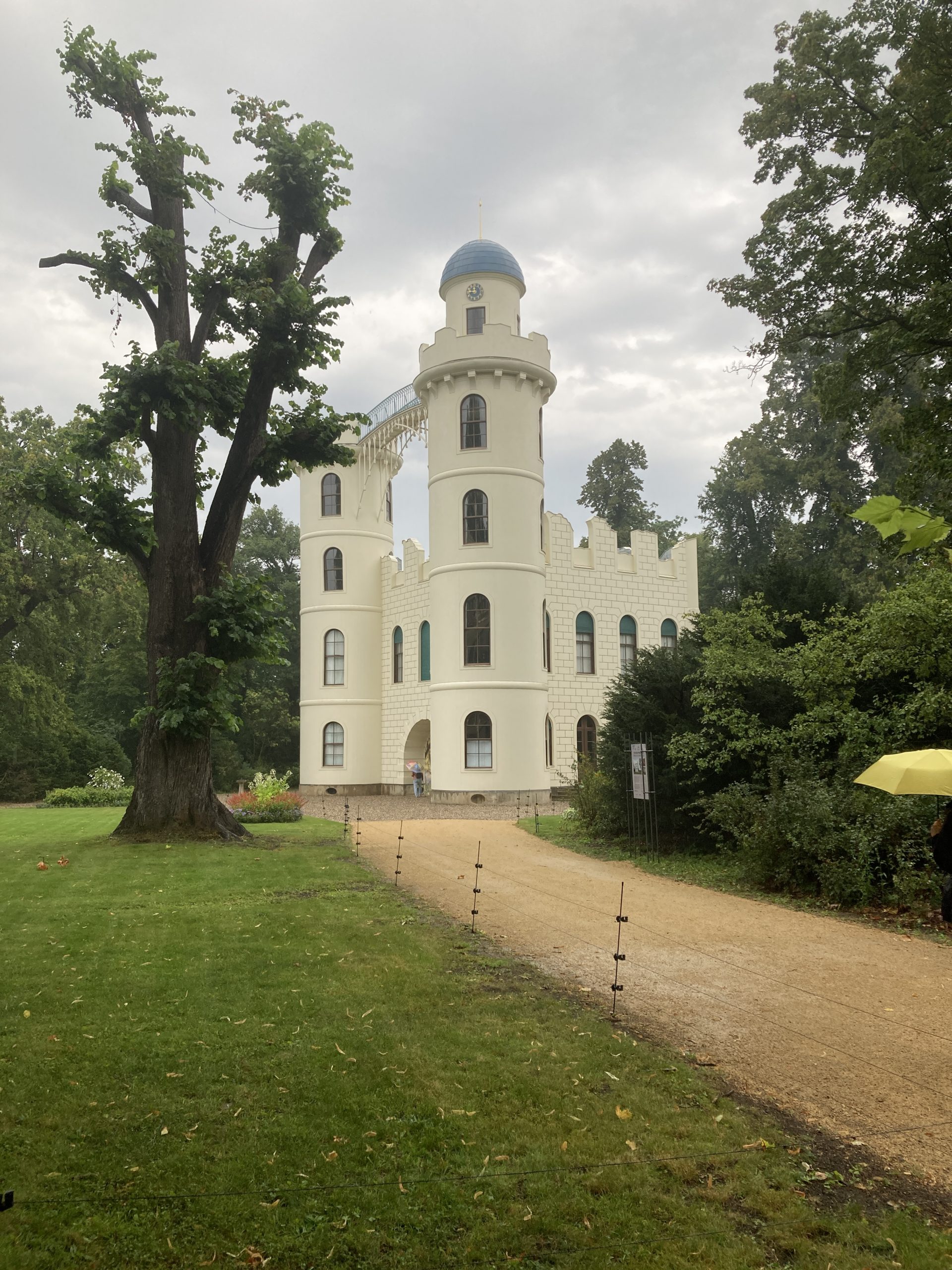 Ursula Sembritzki informierte uns, wie es zum Kauf und der Einrichtung auf der Insel kam. Den kurzen Weg zum Schloß absolvierten wir dann weiter unter dem Regenschirm.