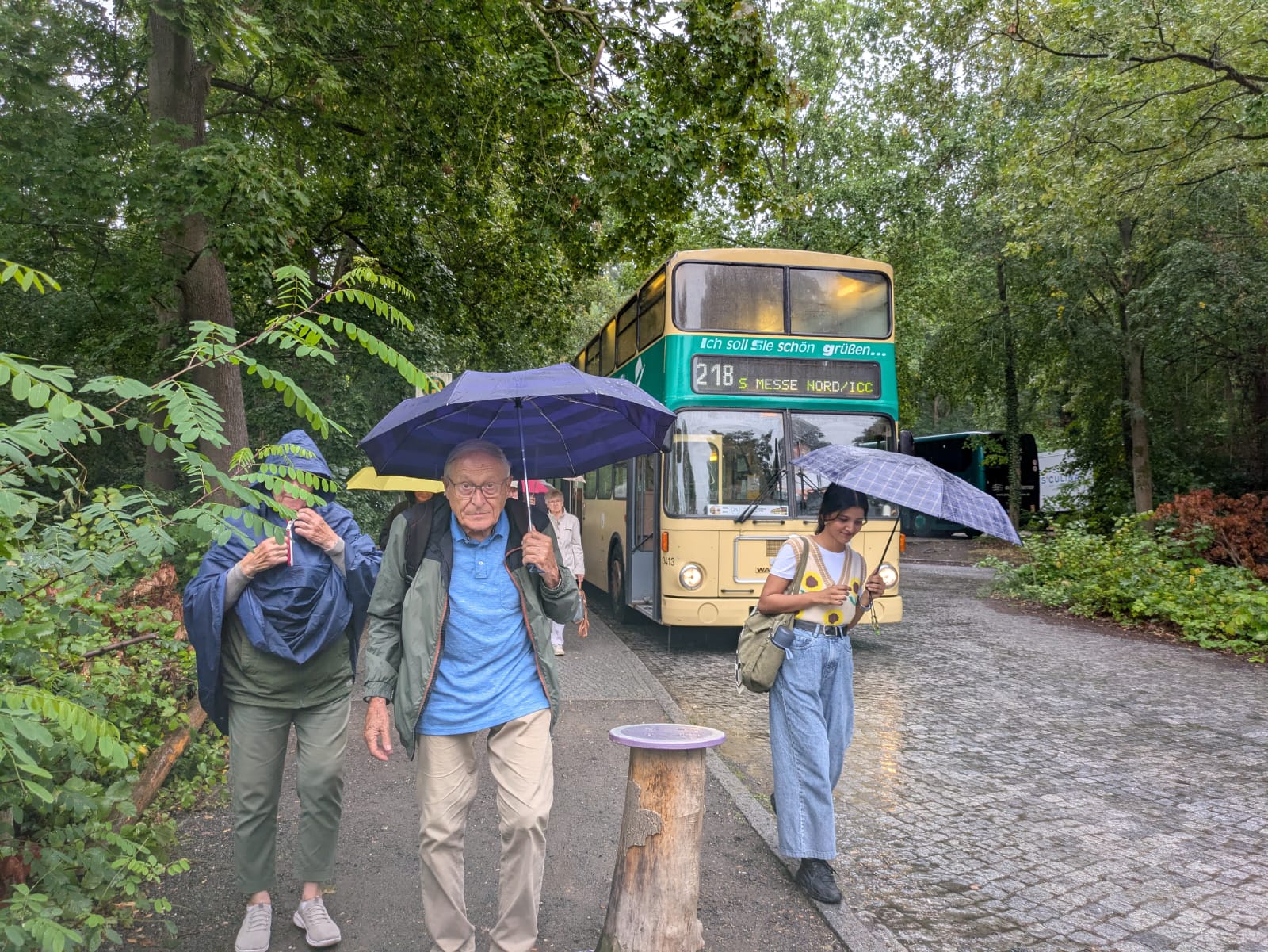Diesmal hatt Petrus es nicht ganz so gut mit uns gemeint. Schon beim Umsteigen am S-Bahnhof Wannsee hatte er einen Regenschauer eingeplant. Mit dem historischen Doppeldeckerbus fuhren wir bis zur Pfaueninsel. Erst einmal galt es mit dem Ticketautomaten für die Fährüberfahrt klar zu kommen. Auf der Insel dann wurden die Ticket nur für das Schlößchen gekauft, da der Regen nur unwesentlich nachließ.